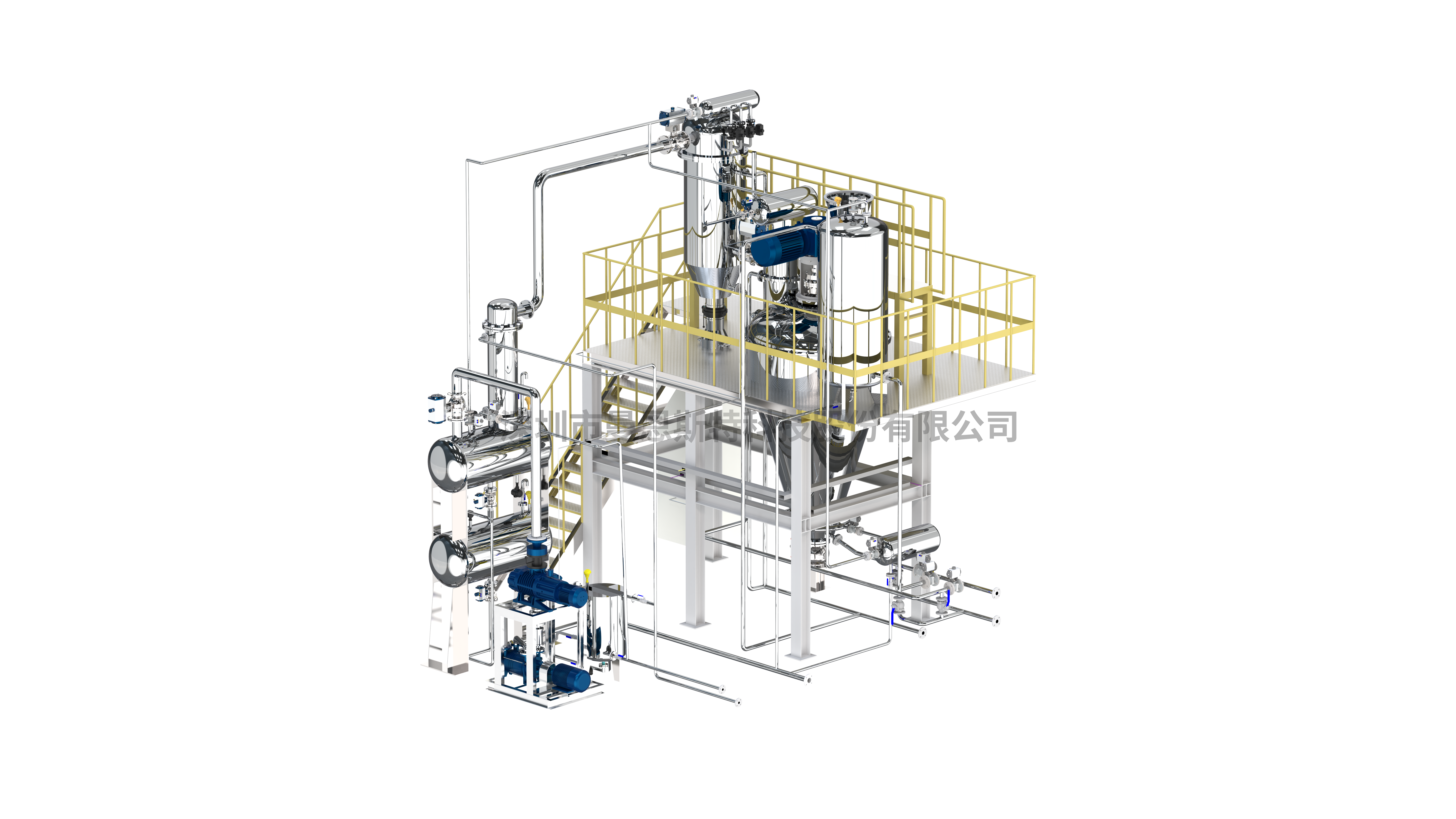 Once heated to process specifications, nitrogen is introduced through the bottom of the single-cone mixer, fluidizing the material bed to enable efficient heat transfer. Simultaneously, under the influence of the closed-circuit vacuum system comprising a water-ring vacuum pump and Roots pump, evaporated gases within the single-cone drying unit are progressively discharged through the primary filter, secondary filter, heat exchanger, pressure stabilization tank, and finally the closed-circuit vacuum system. Partially condensed liquids are collected and discharged from the system via a storage tank.Detailed Introduction