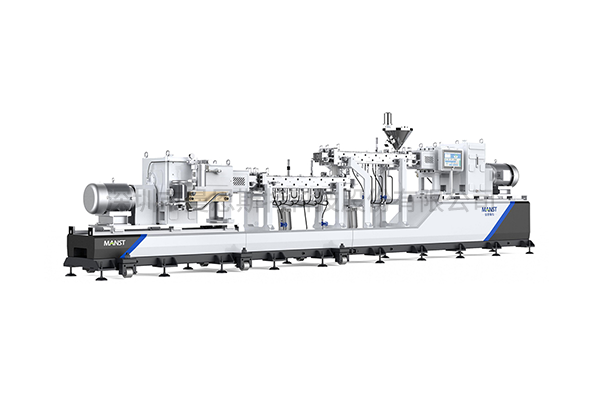 Flip-Top Twin-Screw Extruder for Slurry ProcessingThis twin-screw extruder is an integrated processing system that combines conveying, kneading (homogeneous mixing), dispersing, blending, and extrusion functions. It features an upper and lower parts in a twin-screw series configuration, and each main barrel is designed with a flip-top cover for easy inspection and maintenance. Each part consists of a dispersing kneading unit, gearbox, and drive assembly. The motor powers two co-rotating screws equipped with modular, combination-type screw elements that can be configured according to process requirements. Material is conveyed, sheared, and compressed within the screw channels, then repeatedly mixed and kneaded in the narrow cavities between the screws before being extreded through the die.