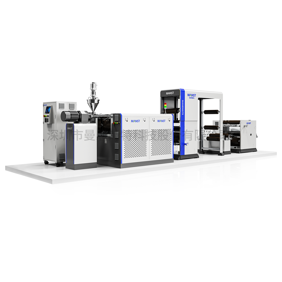 Three-Roll Film Forming MachineThe three-roll system utilizes three coordinated rolls to apply controlled pressure and temperature, compressing the fibrillated material into a uniform thin layer. As the rolls rotate, the layer gradually cools and solidifies into a continuous film. The solidified film is then trimmed and wound into rolls by a take-up mechanism.Detailed Introduction