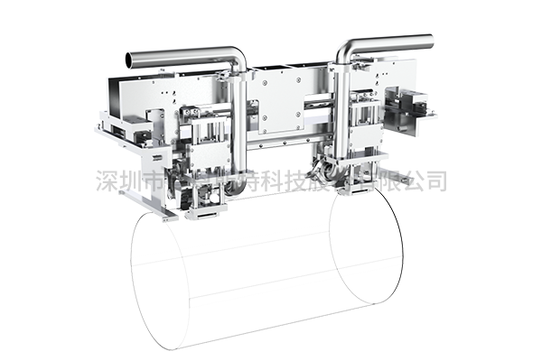 Edge Trimming ModuleThe trimming module performs electrode shaping in coordination with film-forming equipment. As Mannster's process involves direct in-line film formation and compounding on rollers, trimming must occur on-roll. Current solutions comprise two methods: non-metallic blade full-cut systems and non-contact metallic blade partial-cut systems—selection depends on critical parameters; non-metallic full-cut delivers superior edge straightness for precision applications, while metallic partial-cut preserves roller surface integrity via contactless operation.