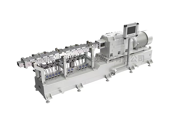 The system consists of a dispersive kneading unit, gearbox, and drive assembly. The motor powers two co-rotating screws equipped with modular, combination-type screw elements that can be configured according to process requirements. As material travels through the screw channels, it undergoes conveying, heating, shearing, and compression. In the narrow gaps within the screw-meshing section, the material is repeatedly sheared, mixed, and fiberized, and is finally extruded and shaped through the die.