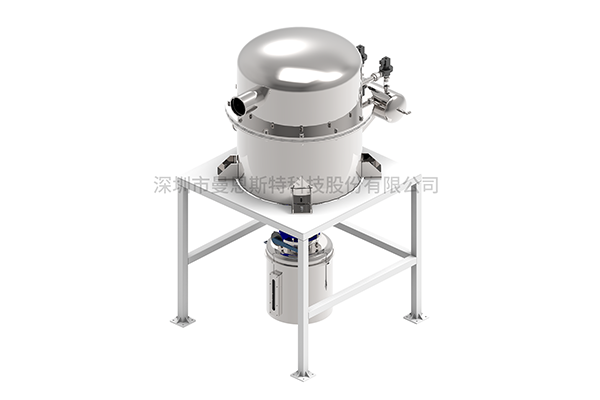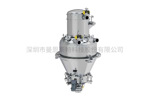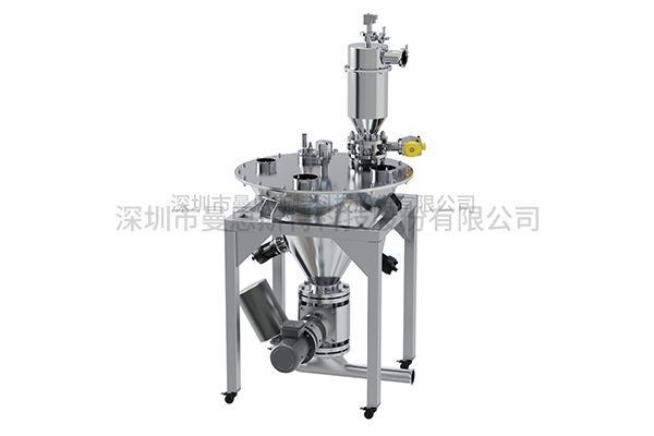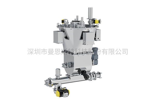 Mass Metering BinLoss-in-Weight Scale is a specialized device for metering and conveying bulk powders or granular materials in sealed environments, constructed entirely of AISI 304 stainless steel with PTFE-coated contact surfaces to prevent material adhesion. It integrates vacuum extraction, nitrogen inertization, pneumatic CIP cleaning, and a rapid-seal gland replacement system. Material flows from the upper storage hopper into the chamber where twin-screw gravimetric feeding operates with an integrated agitator to deagglomerate materials and ensure uniform filling of screw voids. The system employs triple-stage feeding control (High-speed/Mid-speed/Precision modes) to achieve ±0.2% dosing accuracy while optimizing efficiency.Detailed Introduction